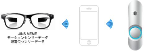 ウェアラブルデバイスJINS MEMEと連携してスマートロック(Akerun)を解錠します。