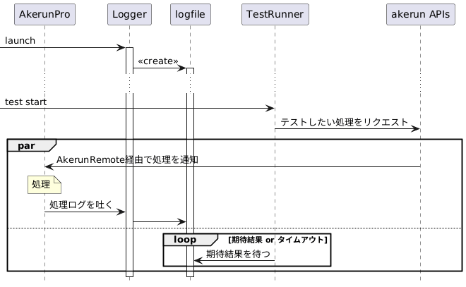 akerun web APIをコールするとAkerun Remote を経由して、指示がAkerun Proに到達して処理を実行します。 Loggerは起動後テキストでファイルに吐き出し続ける構成にしています。 テストランナーでAPIをコールし、Logに期待する結果するまで待つという構成です。 テストランナーはGoを使って書いてみました。